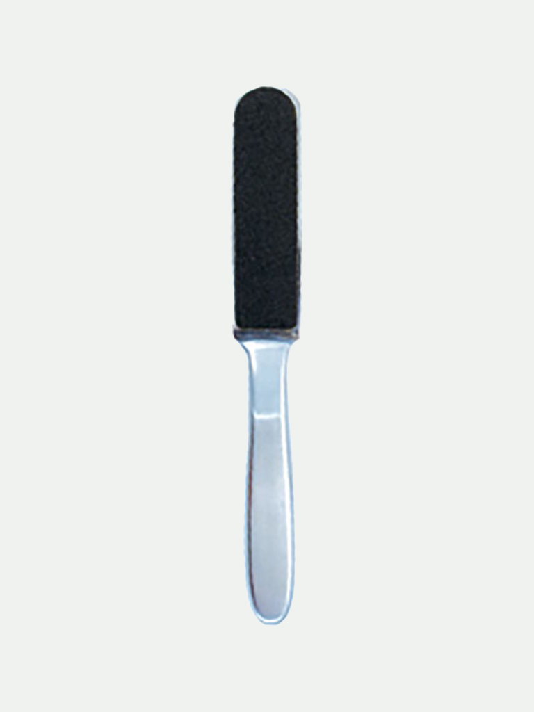 Stainless steel foot file. Features a rubberized handle that can be removed so metal file...