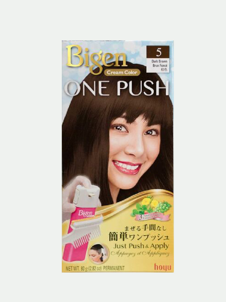 Innovative ‘One Push’ bottle empowers you to color your hair on a whim. Just push the creams directly onto the brush and apply to hair without pre-mixing. Simply store away the bottle with unused solution, and come back anytime for another quick & easy color maintenance.