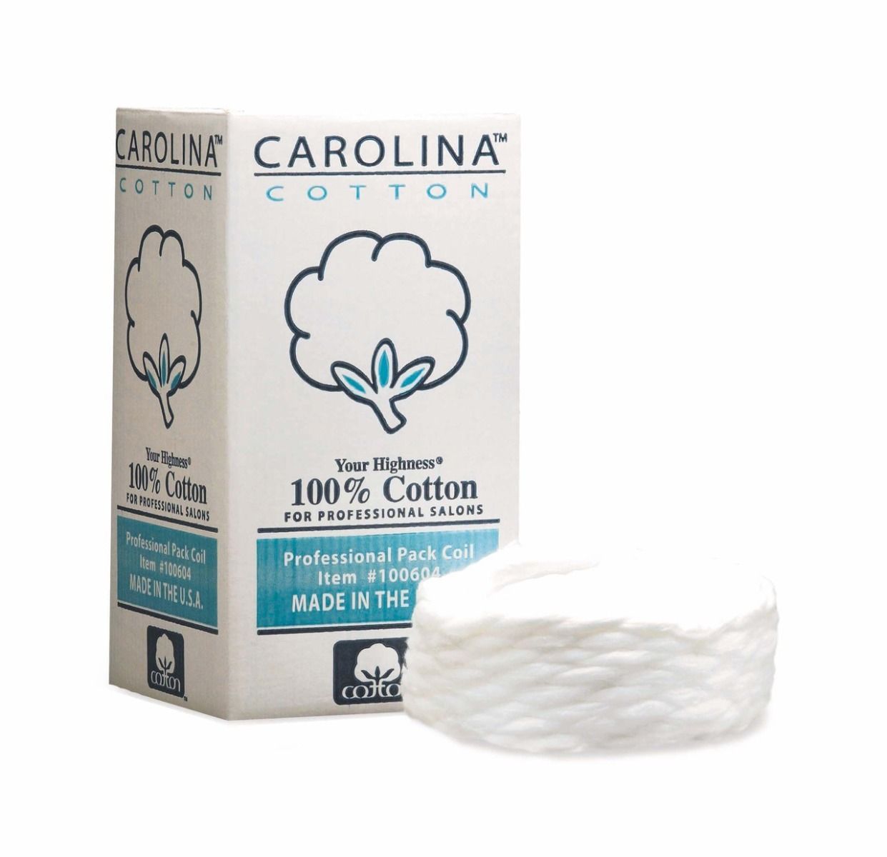 This box of Professional Carolina Cotton Coil is made with 100% natural cotton fibers to provide maximum absorbency and comfort for many applications. Use for Perms, Facials, Manicures, Make-Up and all Beauty salon need.