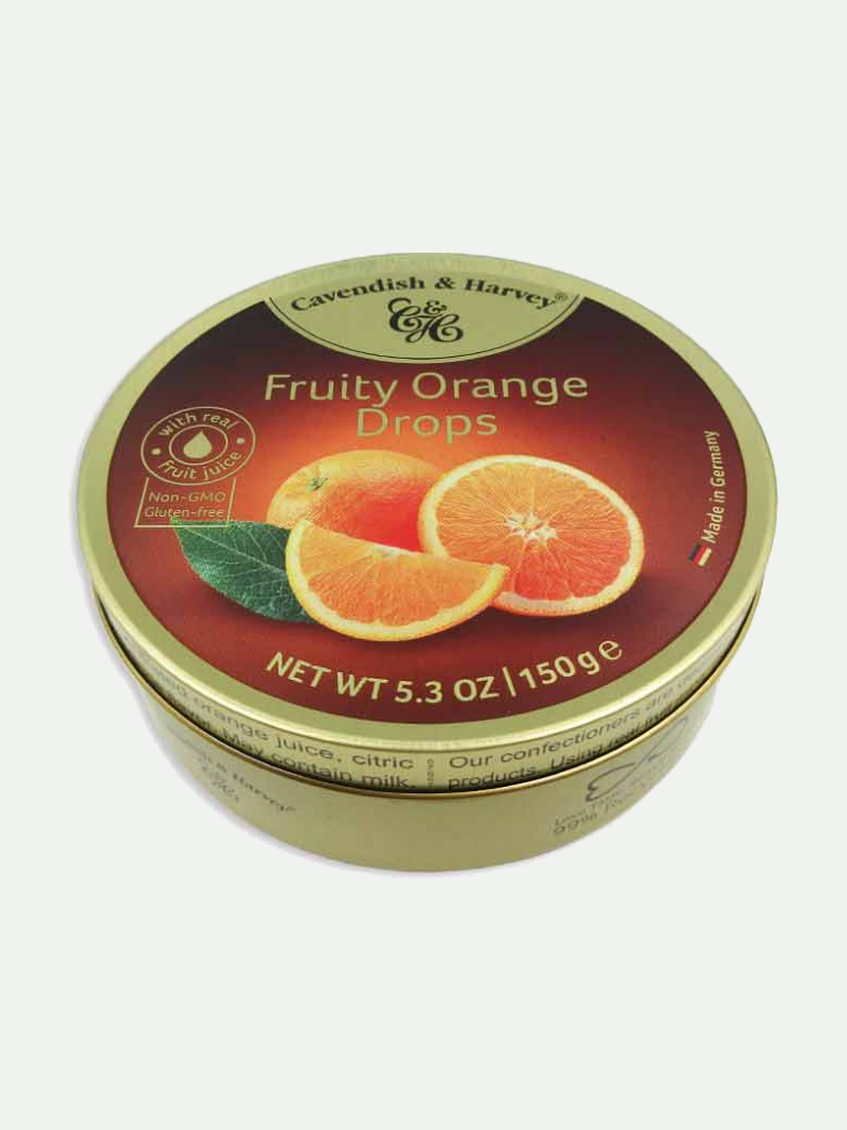 Crafted in Germany by a family-owned company, Cavendish & Harvey Fruity Orange Drops are made with real fruit juice to create irresistibly delicious candy. Each piece is delicately dusted with icing sugar and sealed in a gold tin to preserve their freshness and flavor.