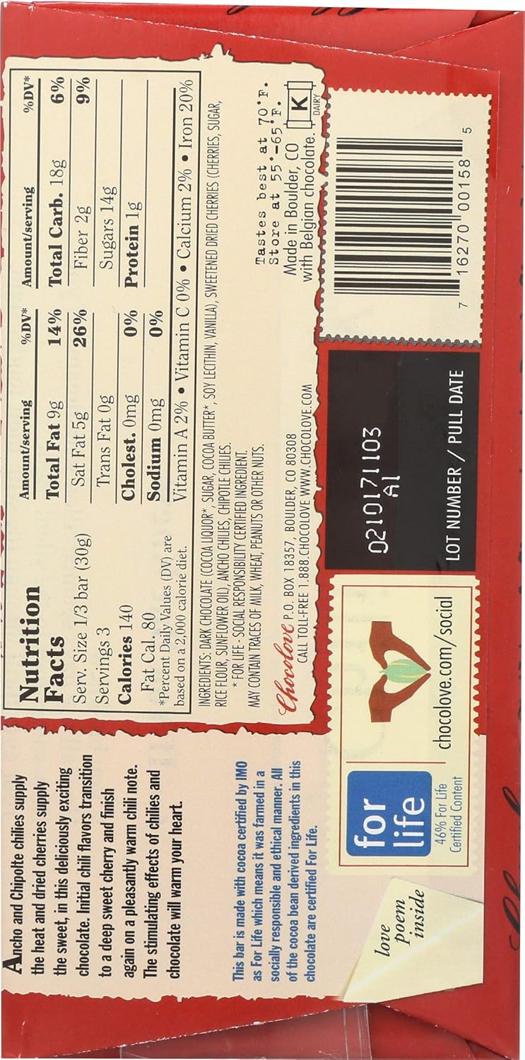 Chocolove Bar 55% Dark Chilies & Cherries, 3.2 oz.