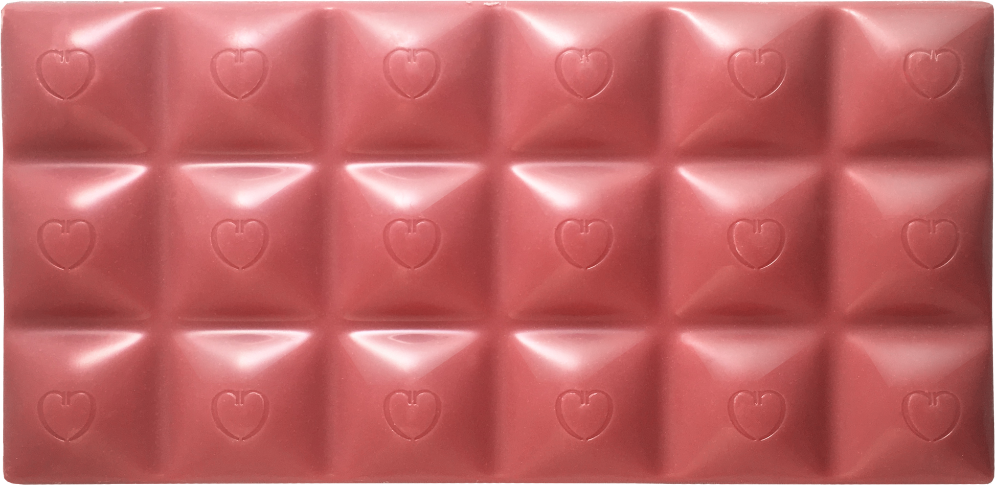 Made from the ruby cocoa bean with no added berries or food coloring. A smooth chocolate taste complemented by berry fruitiness.