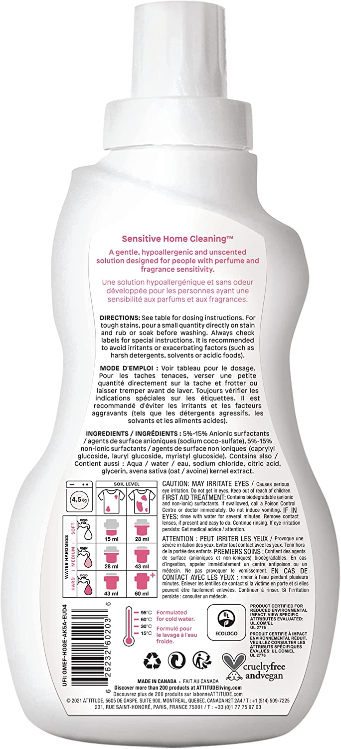 ATTITUDE Baby Laundry Detergent for Sensitive Skin is a safe alternative to traditional detergents which may contain harsh chemicals that can irritate baby-sensitive skin. Its enzyme-free formula uses fragrance-free, hypoallergenic ingredients that are as gentle on synthetic and natural fibers as they are on your little one’s skin. To be sure, we got it dermatologist tested and certified by the National Eczema Association! Graded A on EWG, A clean yet effective formula that deep cleans baby clothes and is tough on dirt and stains. You can now enjoy clean and fresh baby clothes without worrying about ingredients of concern. Try it today!