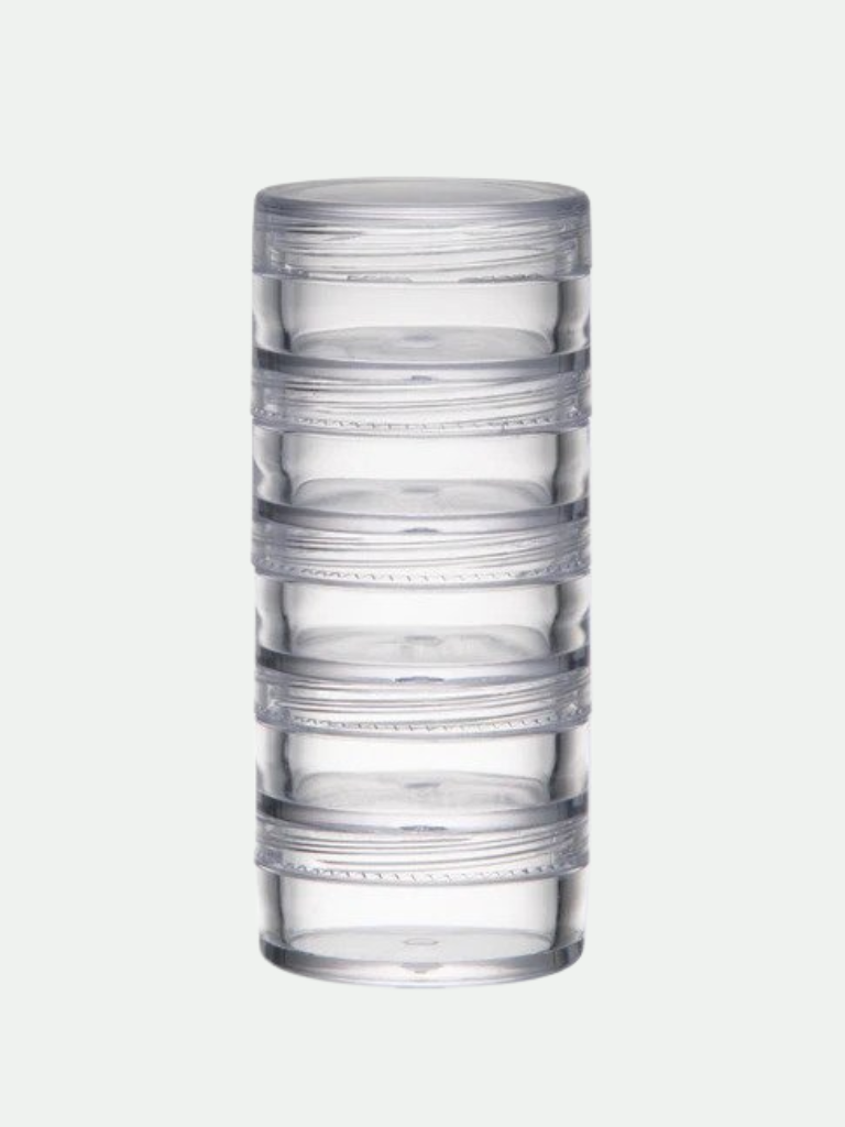 Fantasea Empty 5 Tier Stackable Jar: H 2 3/4" x W 1 1/2" x D 1 1/2." Each tier is 1.5ml/0.05oz.