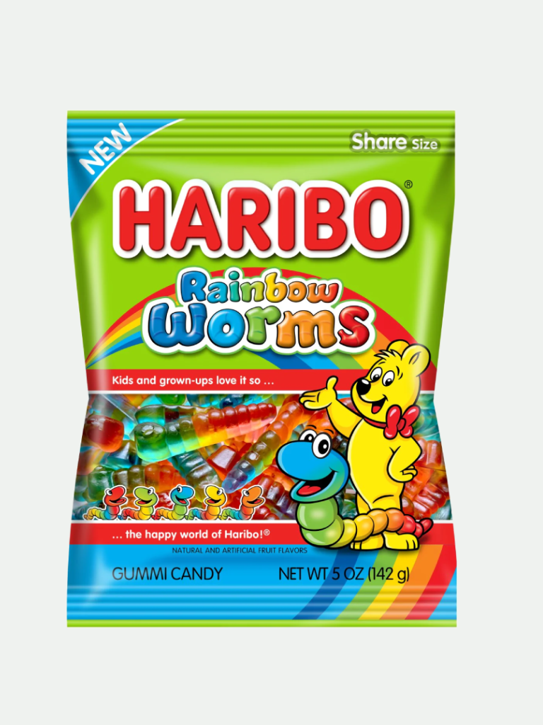 These squiggly, wiggly worms are as irresistible as they are cute! The playful shape of each HARIBO Rainbow Worm makes them perfect for eating whole or chomping your way through the lemon, strawberry, and black currant sections!