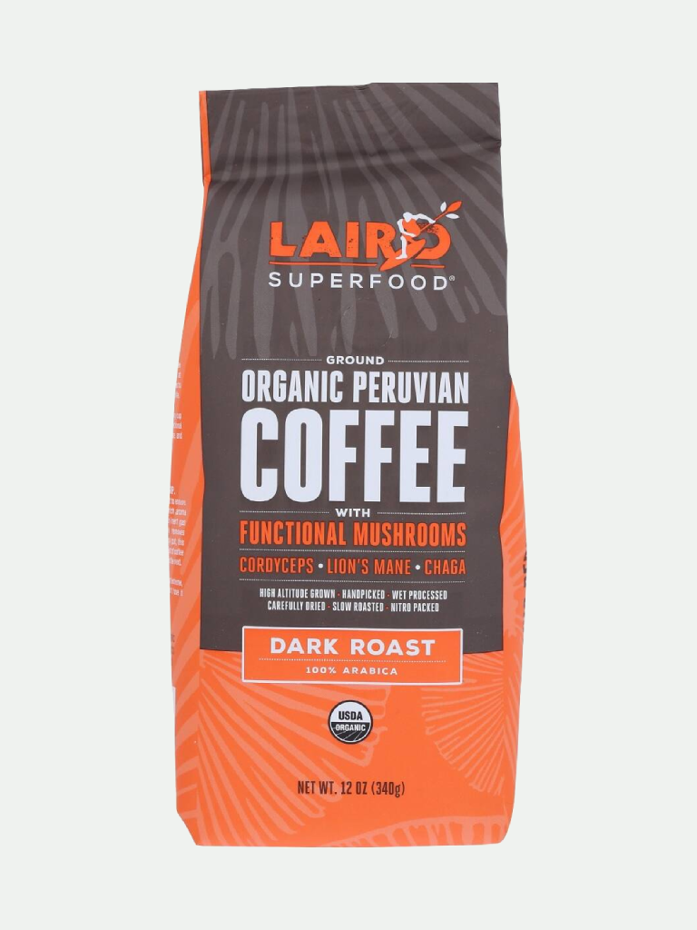 Laird Superfood Dark Roast Ground Mushroom Coffee is crafted with premium, certified organic Peruvian coffee beans. Our hand-picked beans are grown at high-altitude and slow-roasted in small batches to ensure a consistent, rich, and bold flavor profile.This special coffee blend takes your morning cup to a new level with the inclusion of three of our favorite functional mushrooms: Chaga, Lion’s Mane, and Cordyceps. The abundant properties of functional mushrooms are thought to contribute to overall wellness.