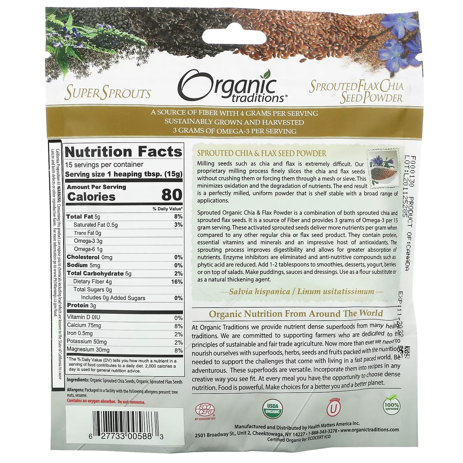 Organic Traditions Sprouted Chia & Flax Seed Powder 8 oz.