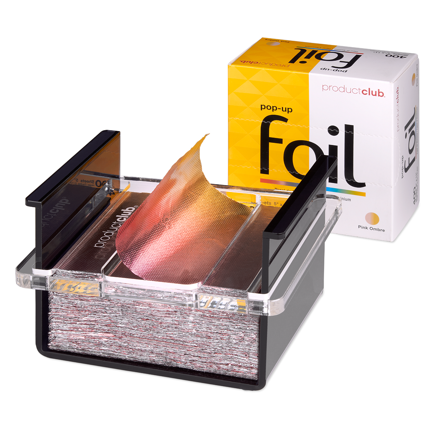 Product Club’s 5" x 11" Pop-Up Foils in Pink Ombre are the perfect combination of style and performance for professional colorists. Each box contains 400 pre-cut, embossed foil sheets designed to provide efficient, mess-free application. The foils feature a stunning pink-to-gold ombre gradient that adds a modern, eye-catching aesthetic to any coloring service. Crafted with a lightly embossed texture, these foils help prevent slipping and color bleeding during processing, ensuring precision and consistency.