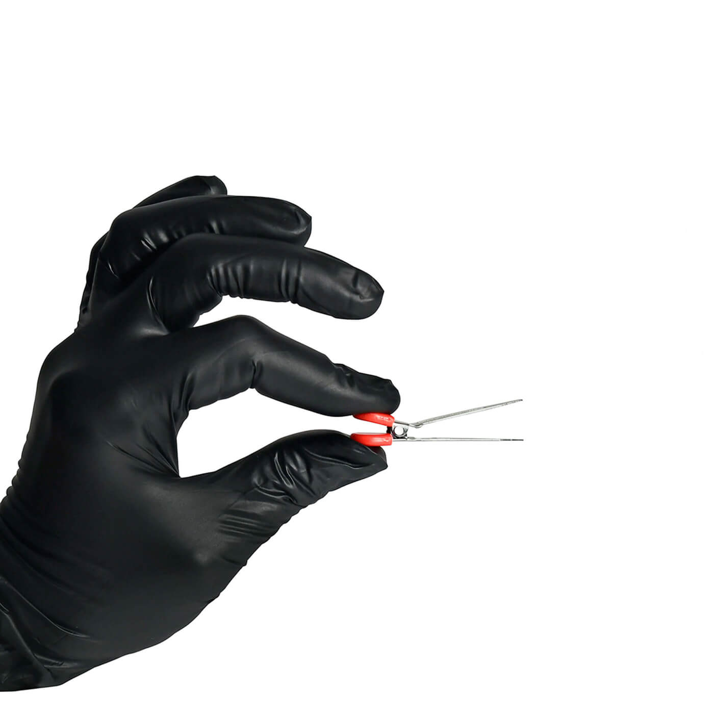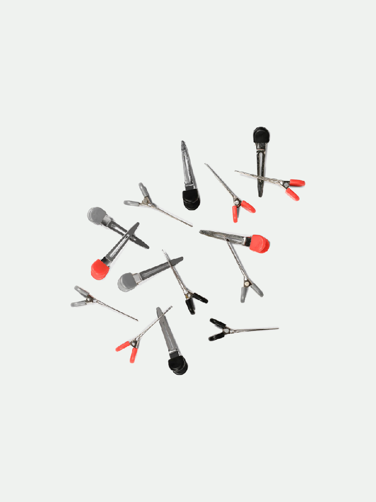 Super lightweight clips have a firm grip and secure tightly to balayage film without weighing it down. Great for sectioning and securing hair. Small, single-prong design is 2" in length and features rubberized pads that are easy to grip, even with gloves on. Includes 15 clips in red, silver, and black.