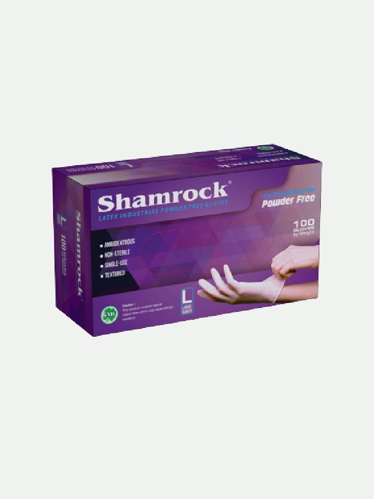 Industrial grade Shamrock Powder Free Latex Gloves are durable disposable gloves that help protect hands from hazards such as bacteria, viruses, and fungi, and can help prevent cross contamination in your salon when used correctly. These latex gloves are textured to help you keep a firm grip and have a form-fitting design that doesn’t restrict fine finger movements.