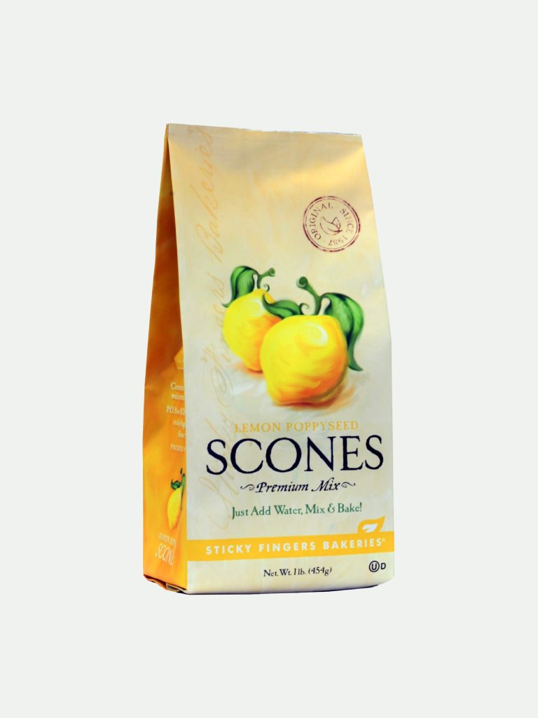 The Sticky Fingers Lemon Poppyseed Scone Mix is a delightful blend of lemon and crunchy poppy seeds. It would be a great accompaniment to coffee or tea.