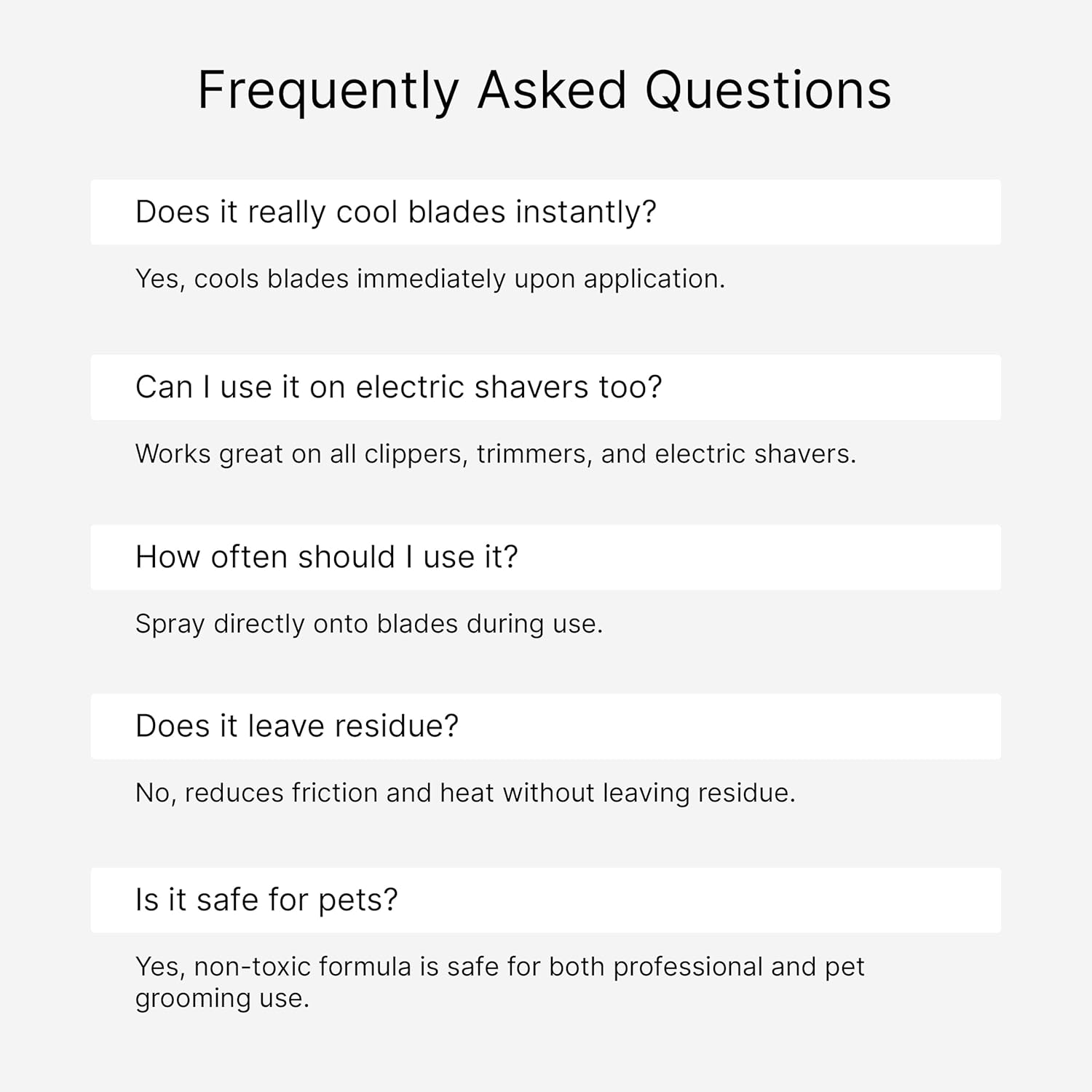 5-in-1 formula cools, lubricates, cleans, disinfects, and protects blades
